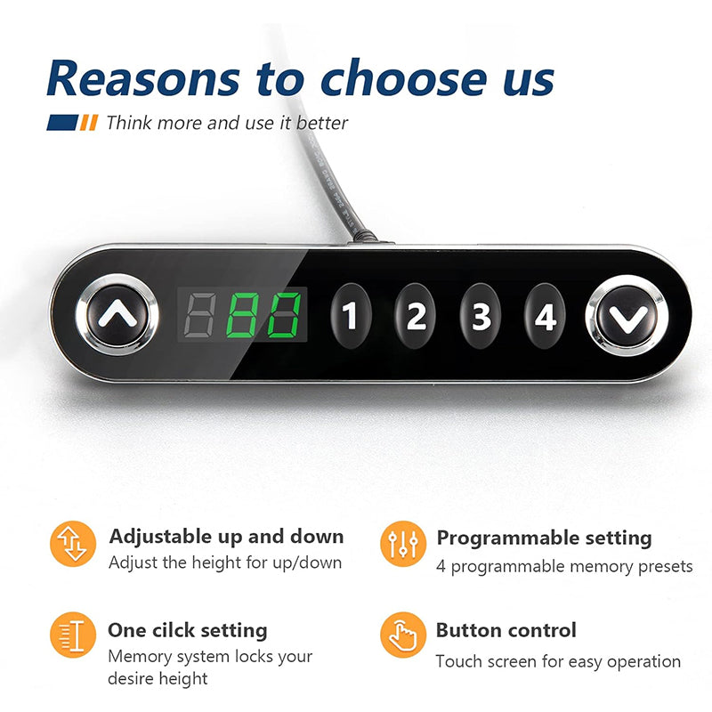 ✅ Health-Centric Design: Combat sedentary fatigue with programmable height presets (3 memory slots) and anti-collision sensors for safe transitions.